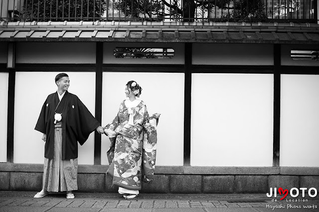 祇園から白川一本橋へ移動をして撮影ですが、今日は風があって、橋の上は少し怖いかもと思ったのですが、赤い番傘を持って、しっかり踏ん張って頂いた新郎様のおかげでも、ここでもすごくいい雰囲気の写真が撮れて、前半の撮影を済ませて、お支度場所へ戻り、お昼ご飯休憩です。