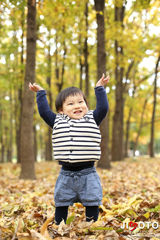 地面に座り込んで、落ち葉で遊んで、手に土がついて汚れても、元気に遊んでくれる姿を暖かく見守ってくれる、ご家族の皆さん。そんな気持ちが、ちゃんと写真には写って残るんですね。